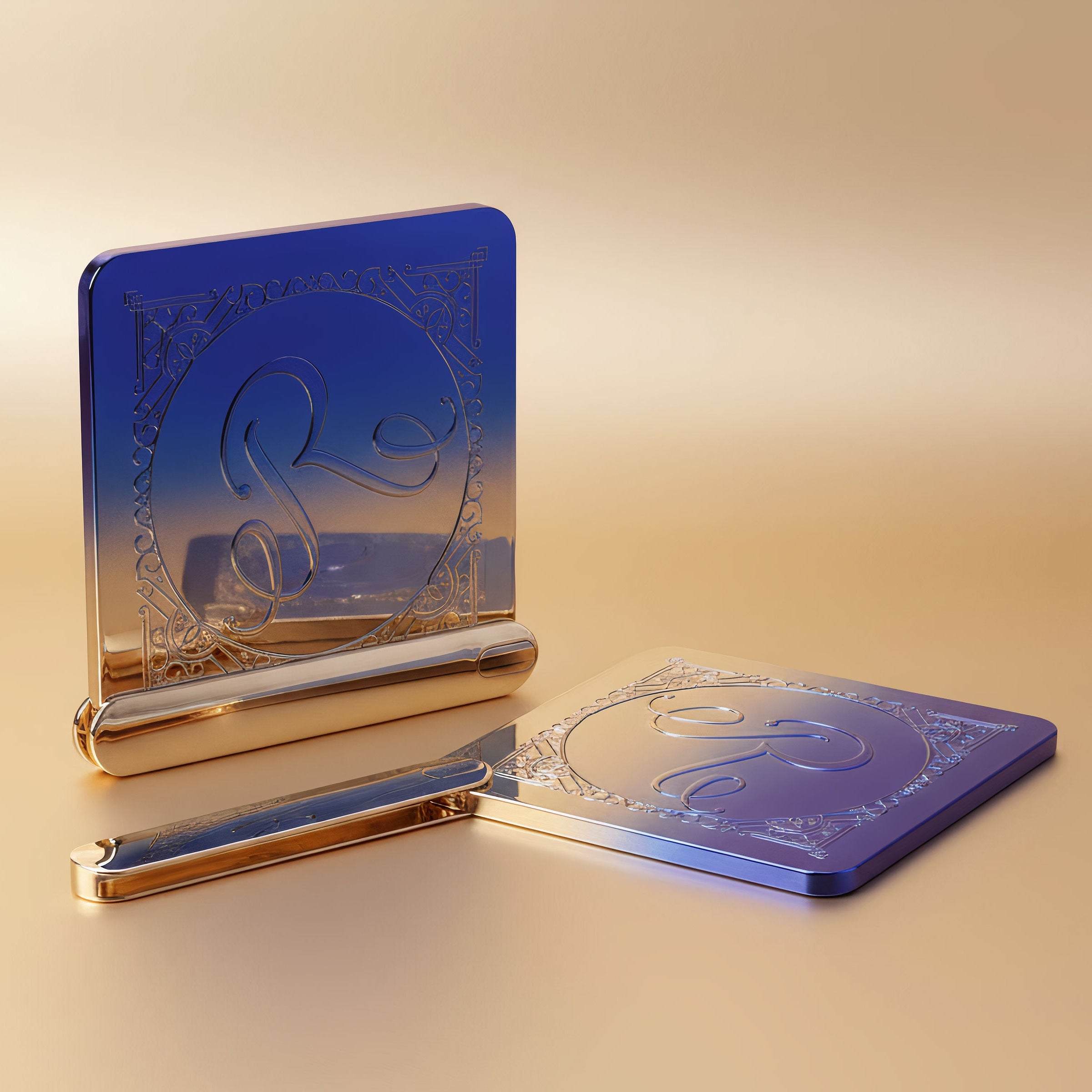 El Espejo Esencia regresa con un diseño degradado de azul profundo a dorado luminoso, reflejando la elegancia y armonía que distinguen a la colección. Su acabado brillante captura la luz y aporta un toque de lujo a cualquier espacio.