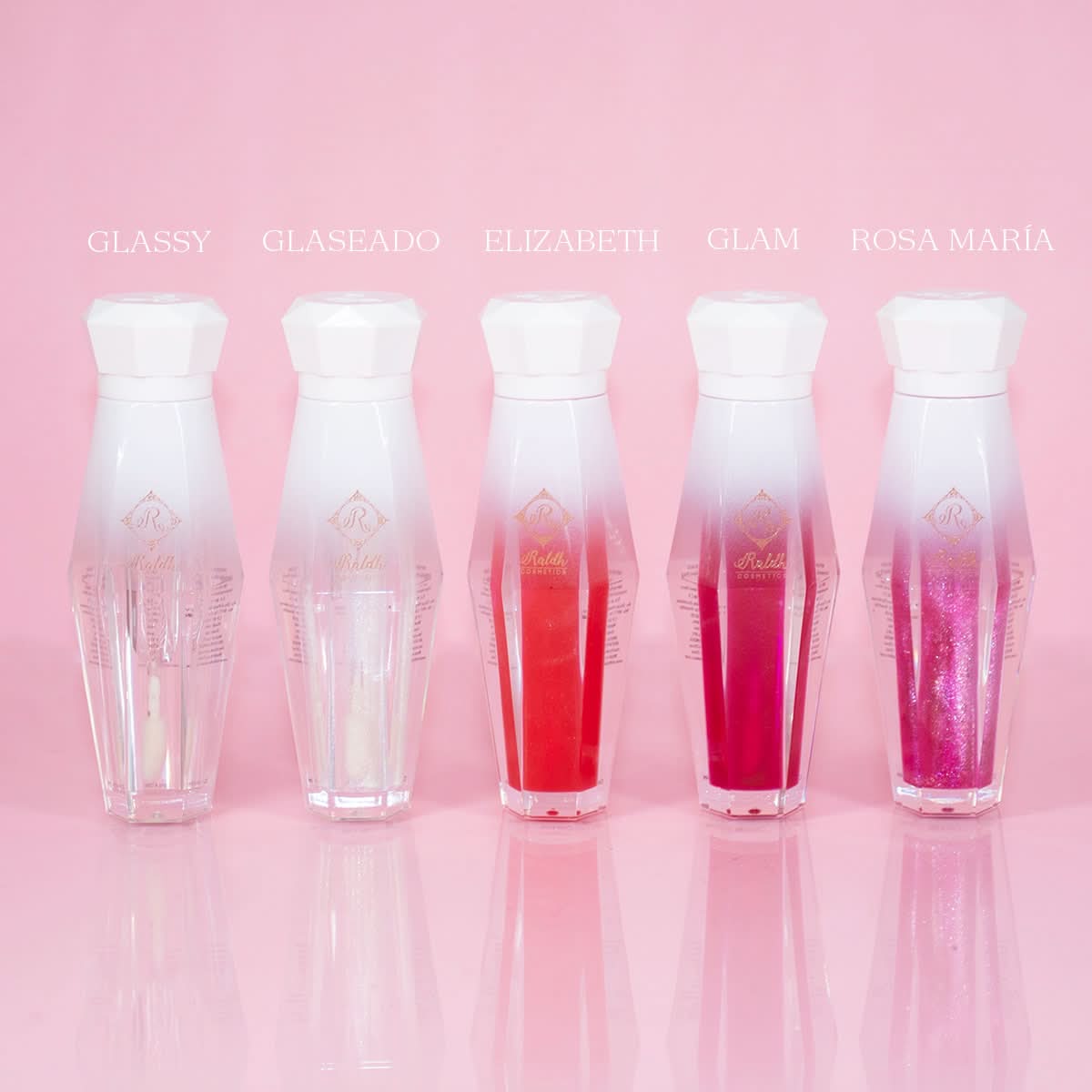 ¡Los 5 glosses de Raldh en un Bundle! Descubre la magia de cada uno de los glosses de la colección: Glassy es el gloss clásico transparente, Glaseado el gloss sparkly transparente, Elizabeth dejará un tono rojo sutil en tus labios, Glam brindará un tono rosa y Rosa María un increíble rosa lleno de brillos.